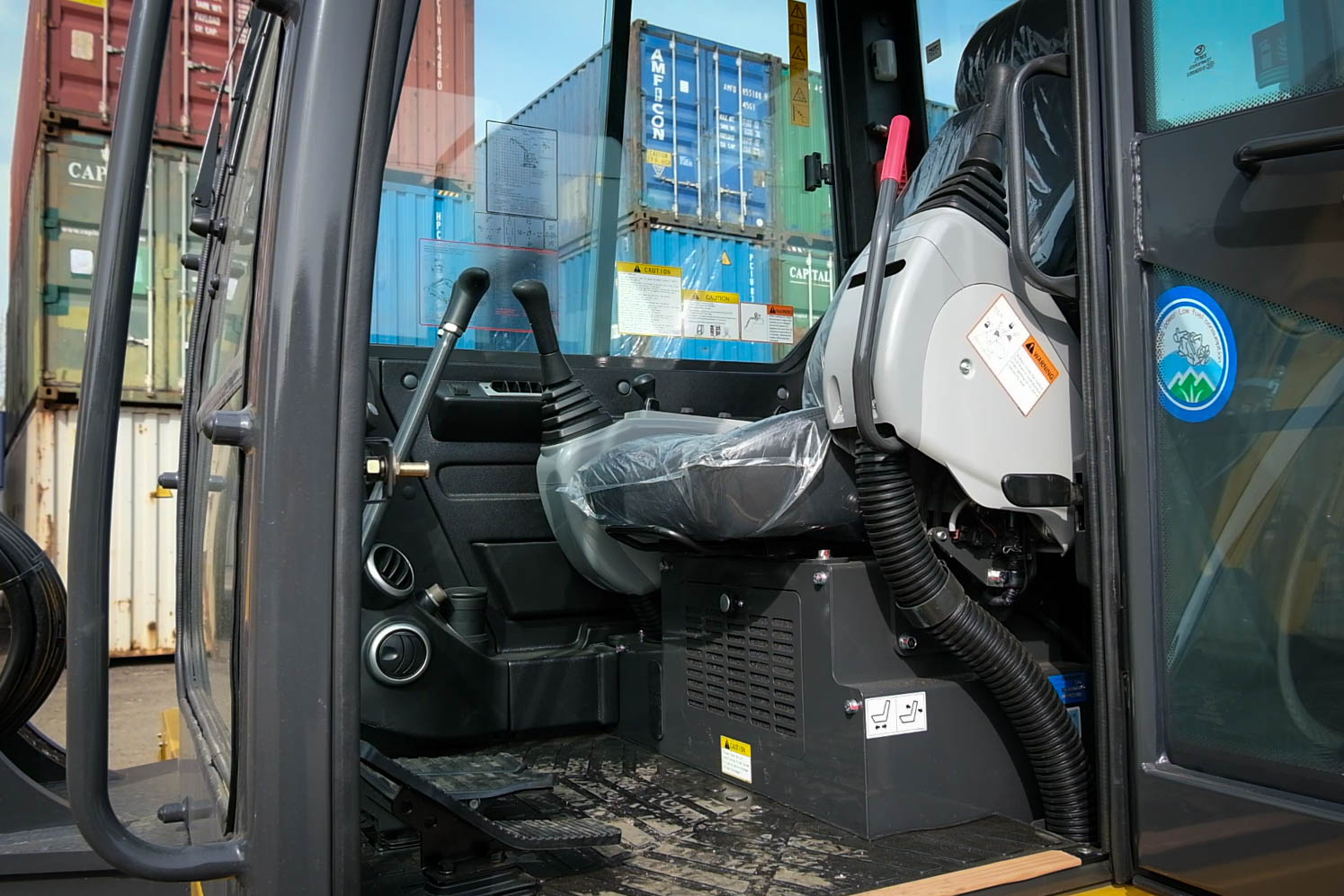 Кабина KATO HD55NSL спроектирована с учётом стандартов FOPS и TOPS — она защищает оператора от опрокидывания и падающих предметов. Внутри — комфортное рабочее место: широкая обзорность, удобное кресло, система климат-контроля (кондиционер и отопитель), MP3/USB-проигрыватель и бортовой компьютер. Все элементы управления интуитивно понятны, а шумоизоляция создаёт комфортную рабочую среду на протяжении всей смены.