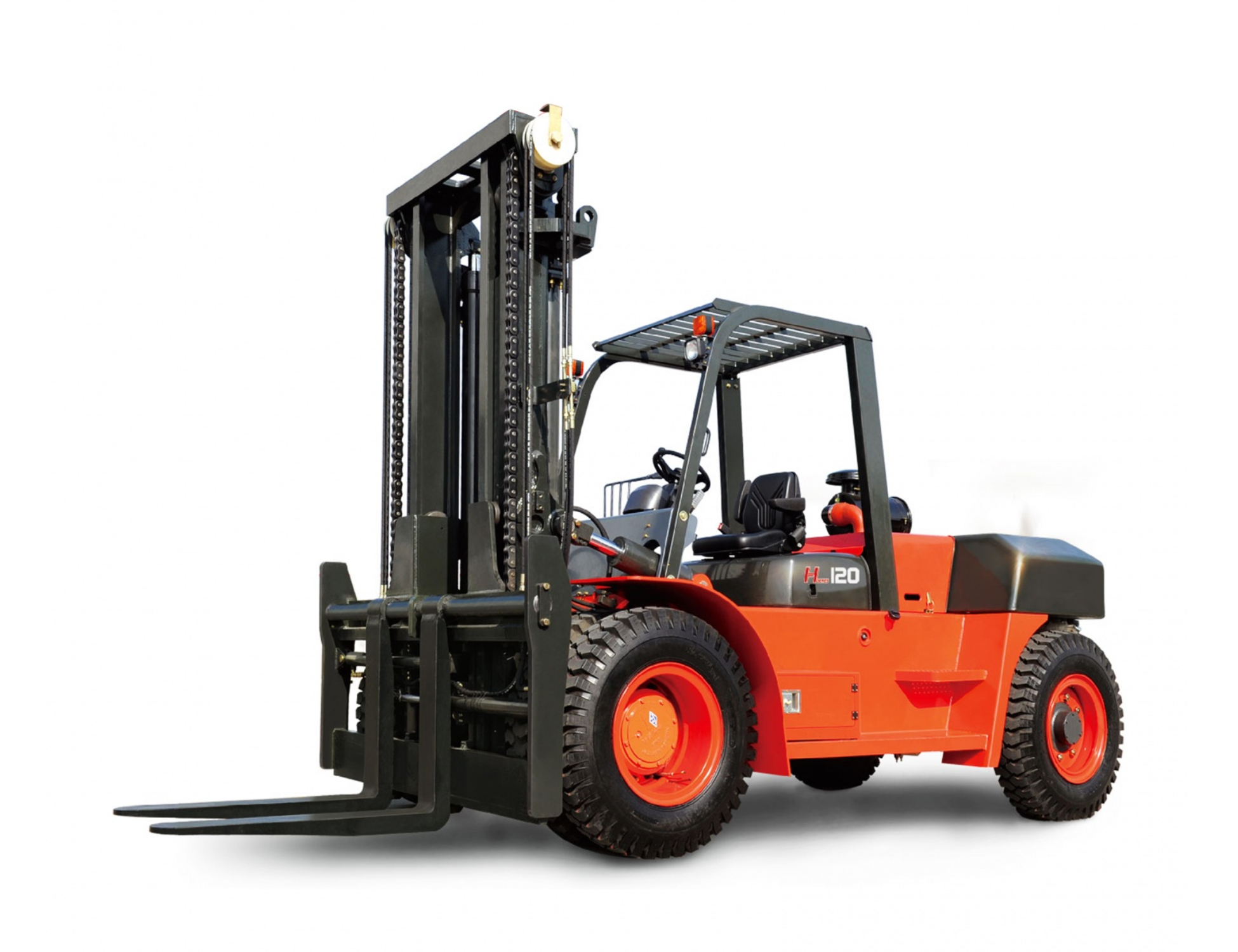 Безопасность. Высокопрочная крыша спроектирована для обеспечения безопасности водителя. Стояночный тормоз с защитным устройством надежно блокирует движение вилочного погрузчика. Предохранительное устройство в гидравлической системе мачты предотвращает падение груза в случае разрыва шланга. Шланг высокого давления расположен далеко от водителя