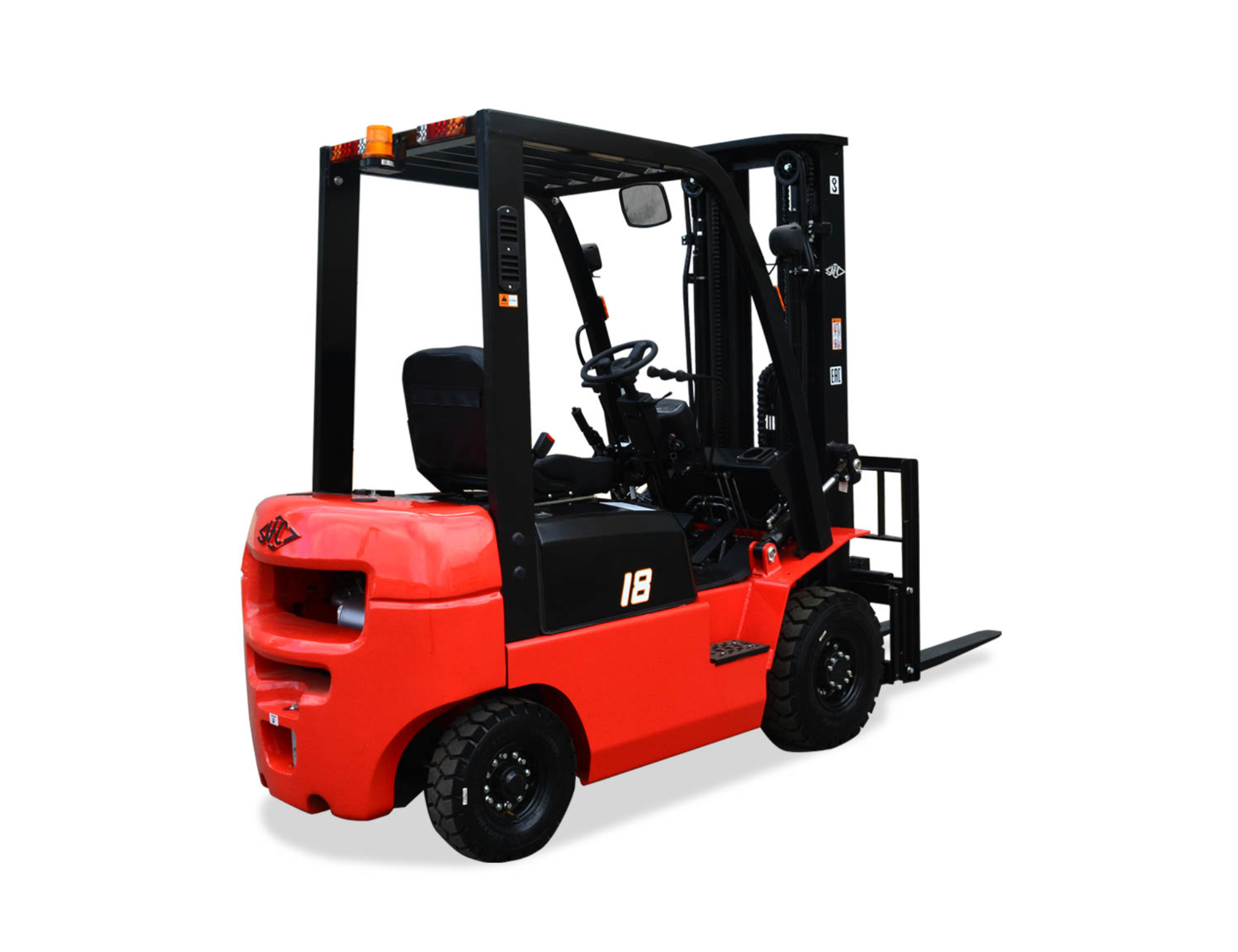 Для обеспечения абсолютной безопасности как оператора, так и тех, кто находится поблизости, применяется широкий спектр технологий. Система определения присутствия оператора (OPS) включает в себя функцию подъема, наклона и остановки перемещения. Когда оператор покидает сиденье, система автоматически блокирует функции подъема/ наклона и отключает движение вилочного погрузчика для обеспечения безопасности. Дополнительная задняя рукоятка с кнопкой звукового сигнала повышает безопасность эксплуатации при движении задним ходом. Для безопасности оператора на капоте двигателя, заслонке и стояночном тормозе имеется блокирующий механизм. Аварийная система фиксирует мачту на месте в случае отказа гидравлики, не позволяя уронить груз.